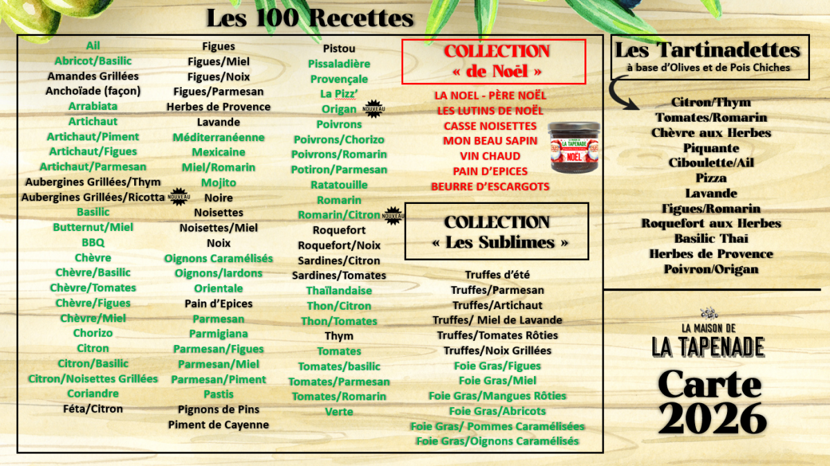 la PLV Classique " LA MAISON DE LA TAPENADE - ARTISANS FRANCAIS "